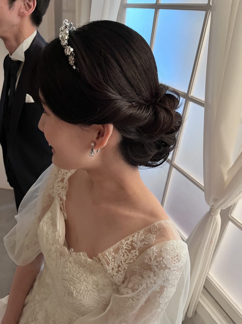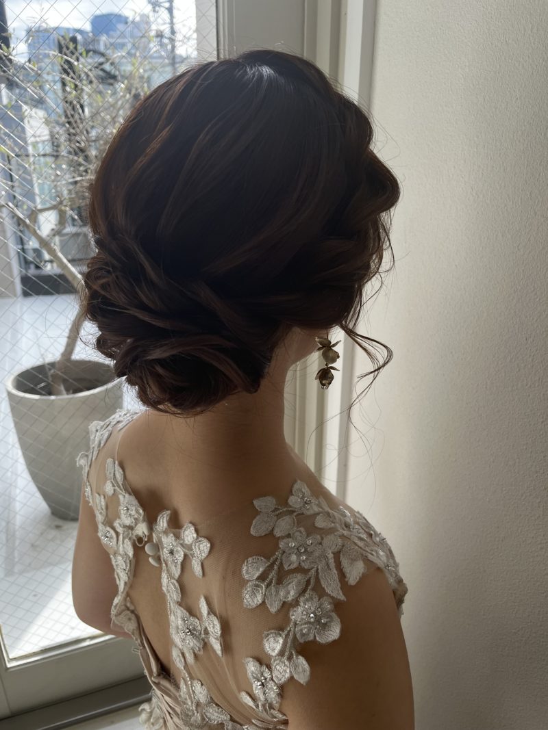 ブライダルヘアメイク事務所に約1年所属したのち、ブライダルヘアメイク、列席ヘアメイク等を担当。