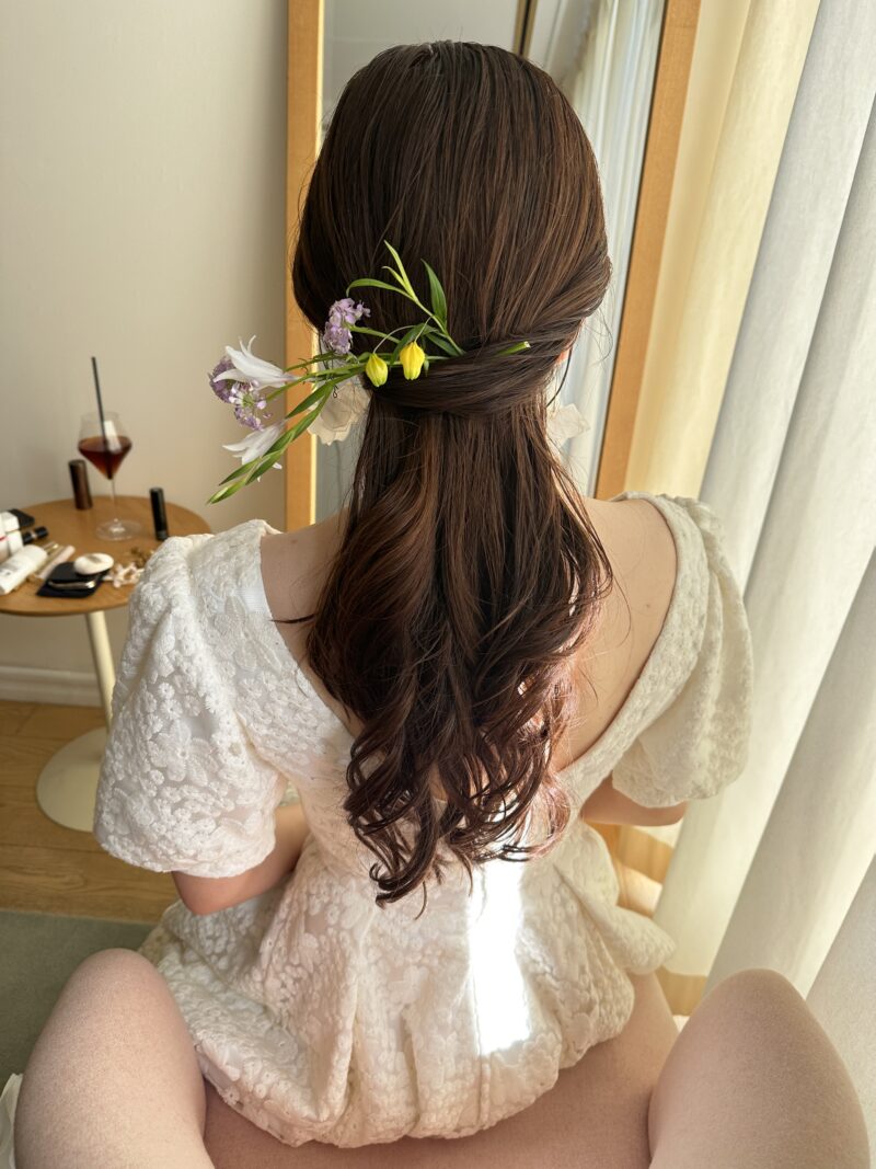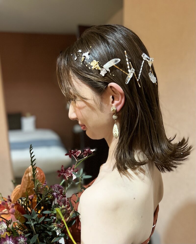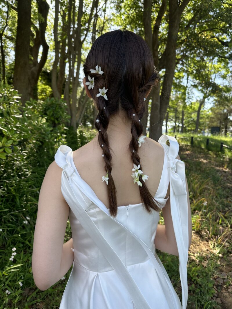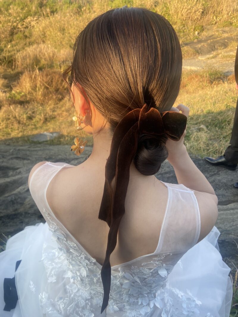 ブライダル専門のヘアメイクを志し、ヘアスクール、着付け教室へ通い、2020年グルノーブル美容専門学校を卒業。